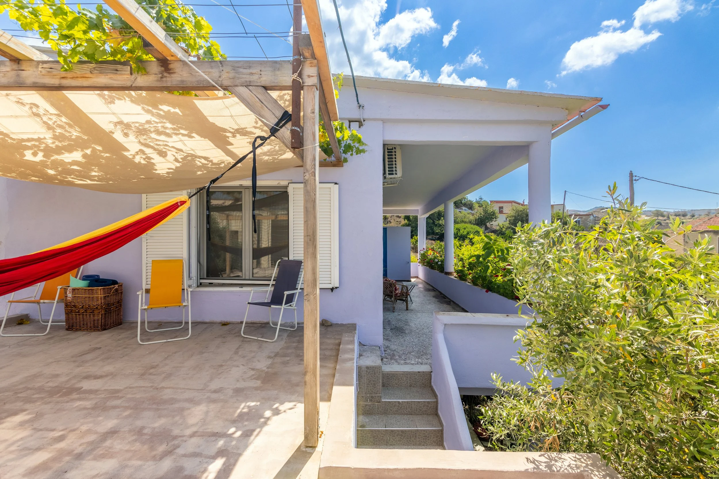 Relax on the terrace with a hammock while enjoying peaceful views of the mountains and garden.