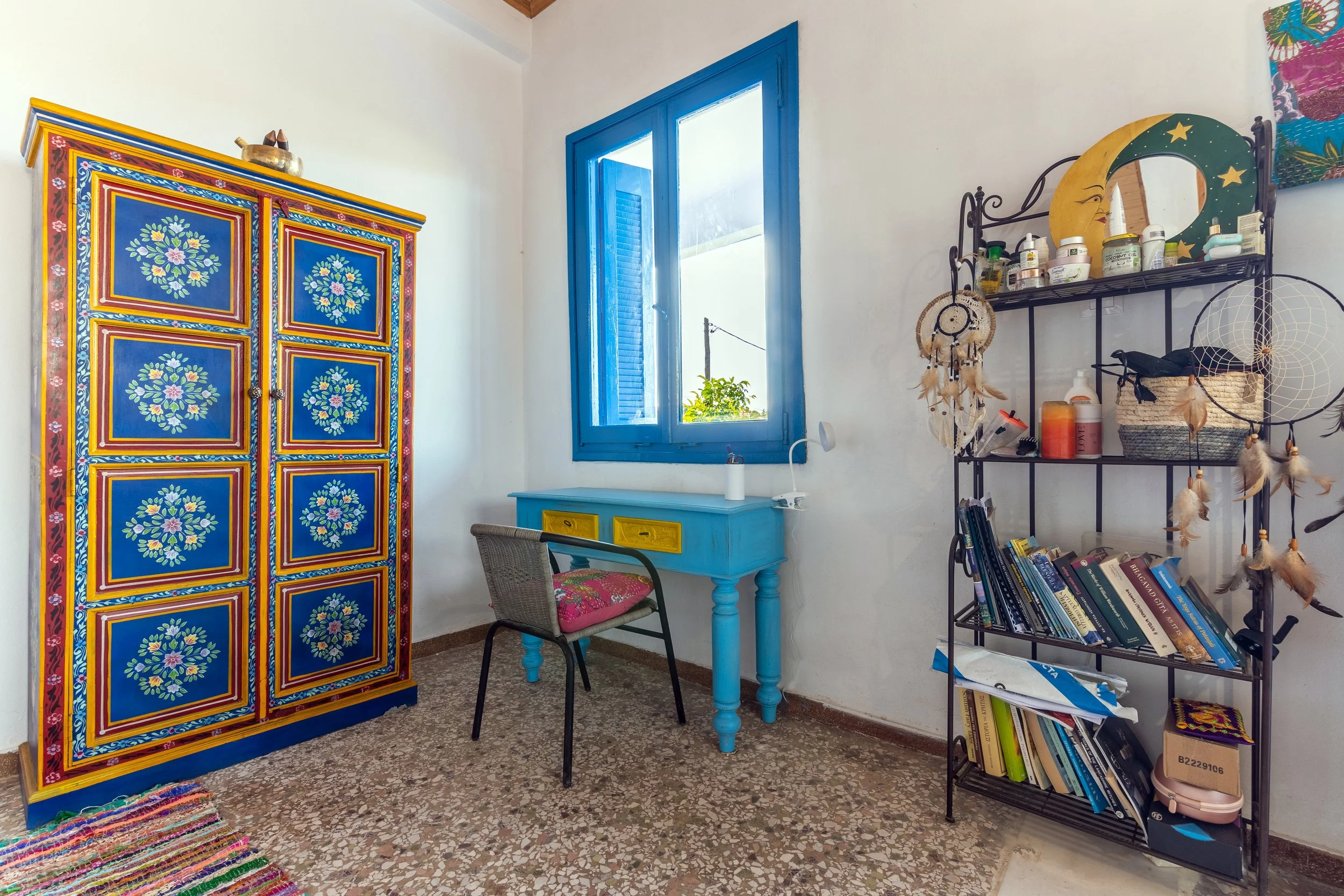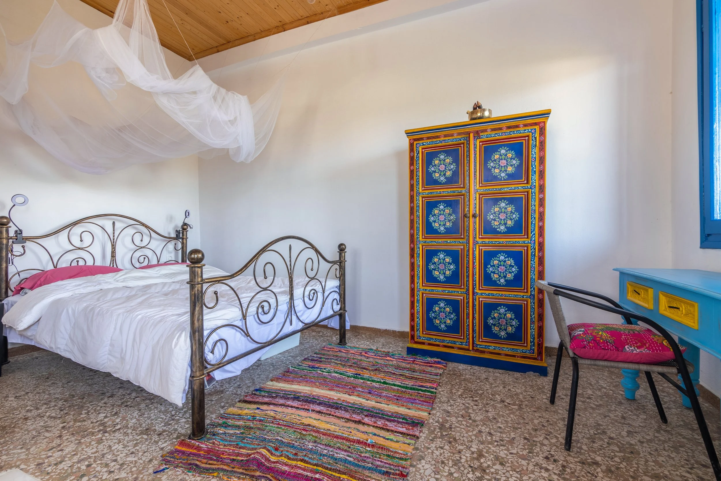 The Blue Moon Room is a spacious and comfortable 50 m² room located on the first floor, offering beautiful views of the Zaros mountains and garden.