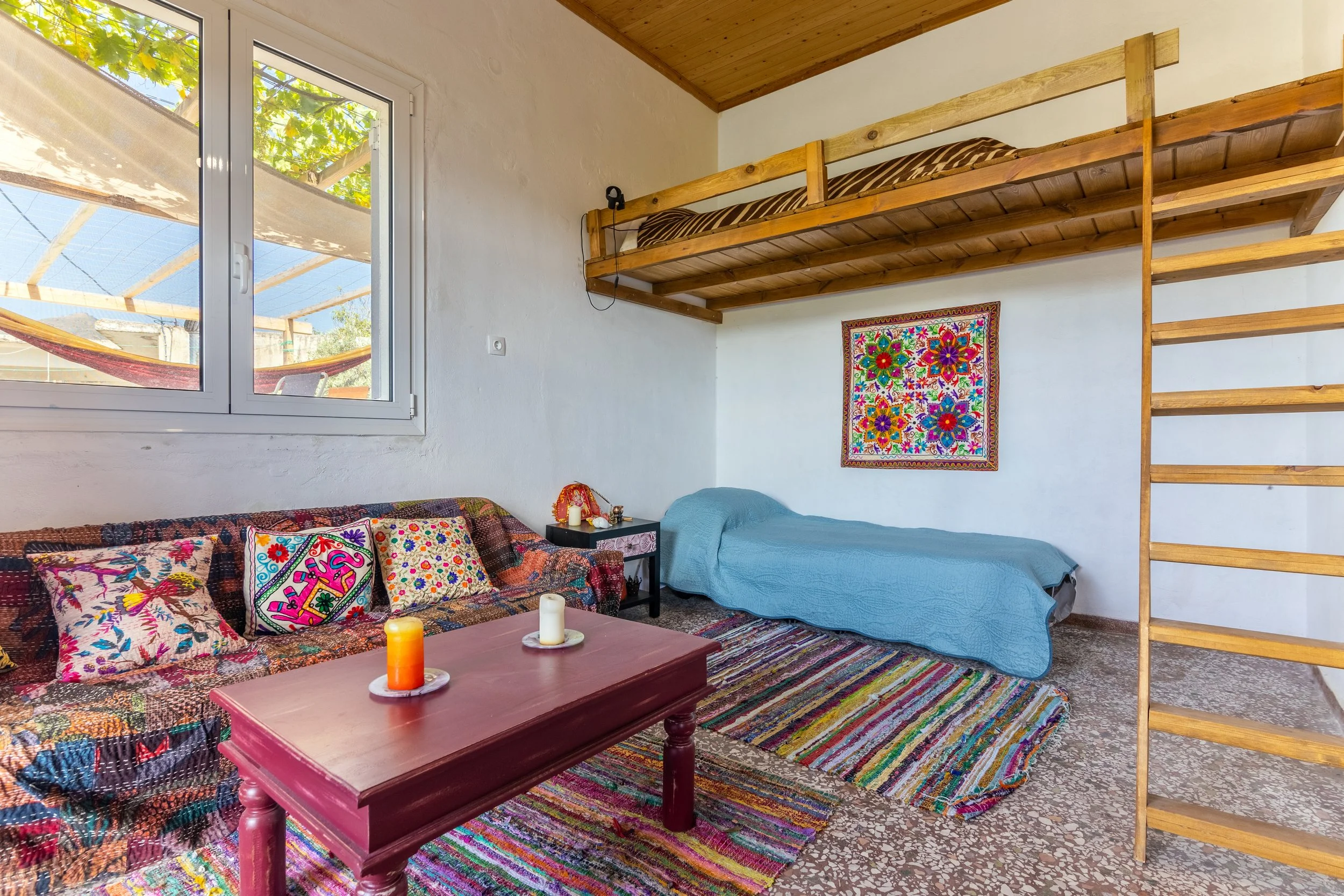Location & Access: The Blue Moon Room is located in the charming village of Zaros, surrounded by mountains and nature. The property is easily accessible by car, with free on-site parking for guests. Public buses also reach Zaros, but the schedule is limited, so driving is the most convenient option.