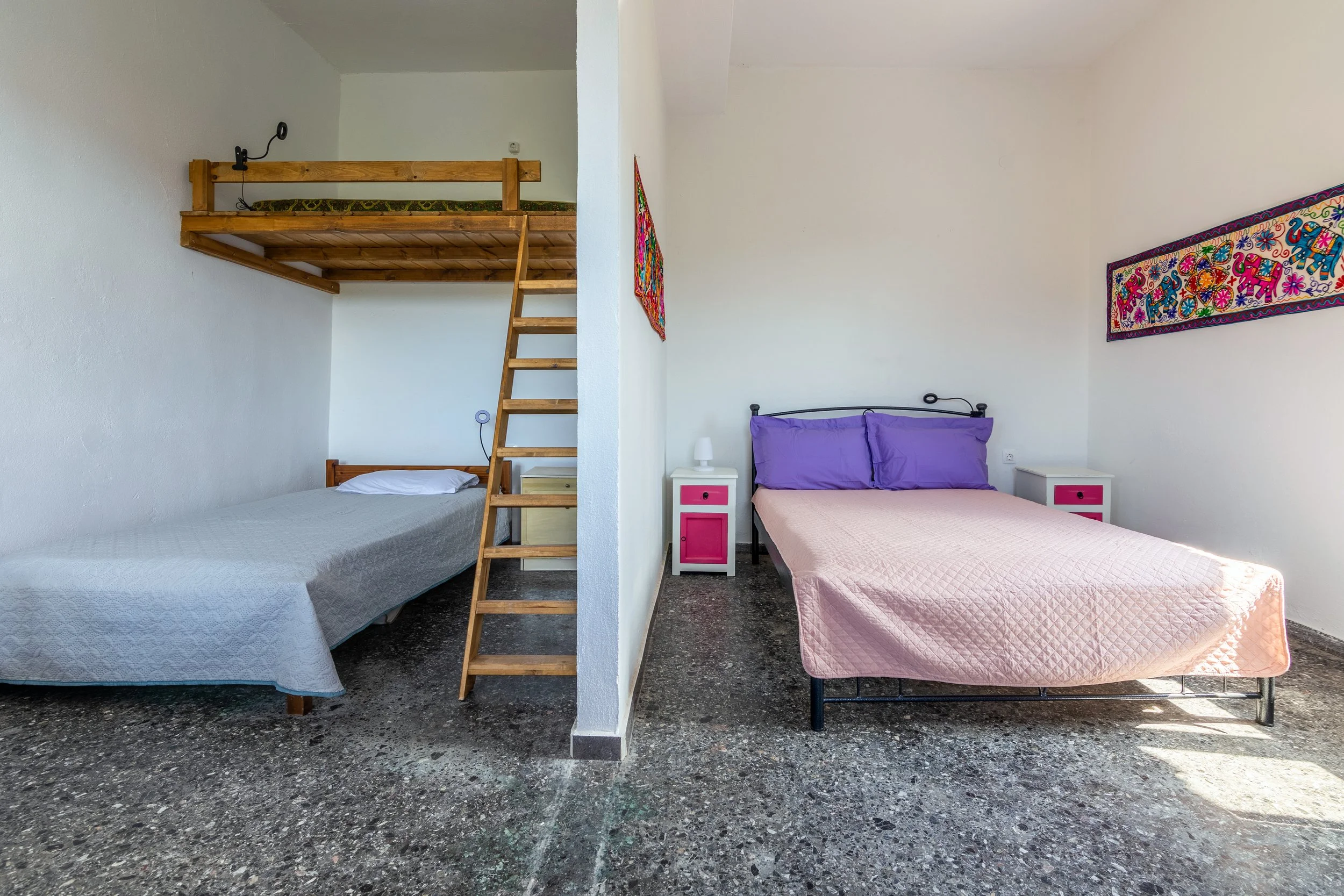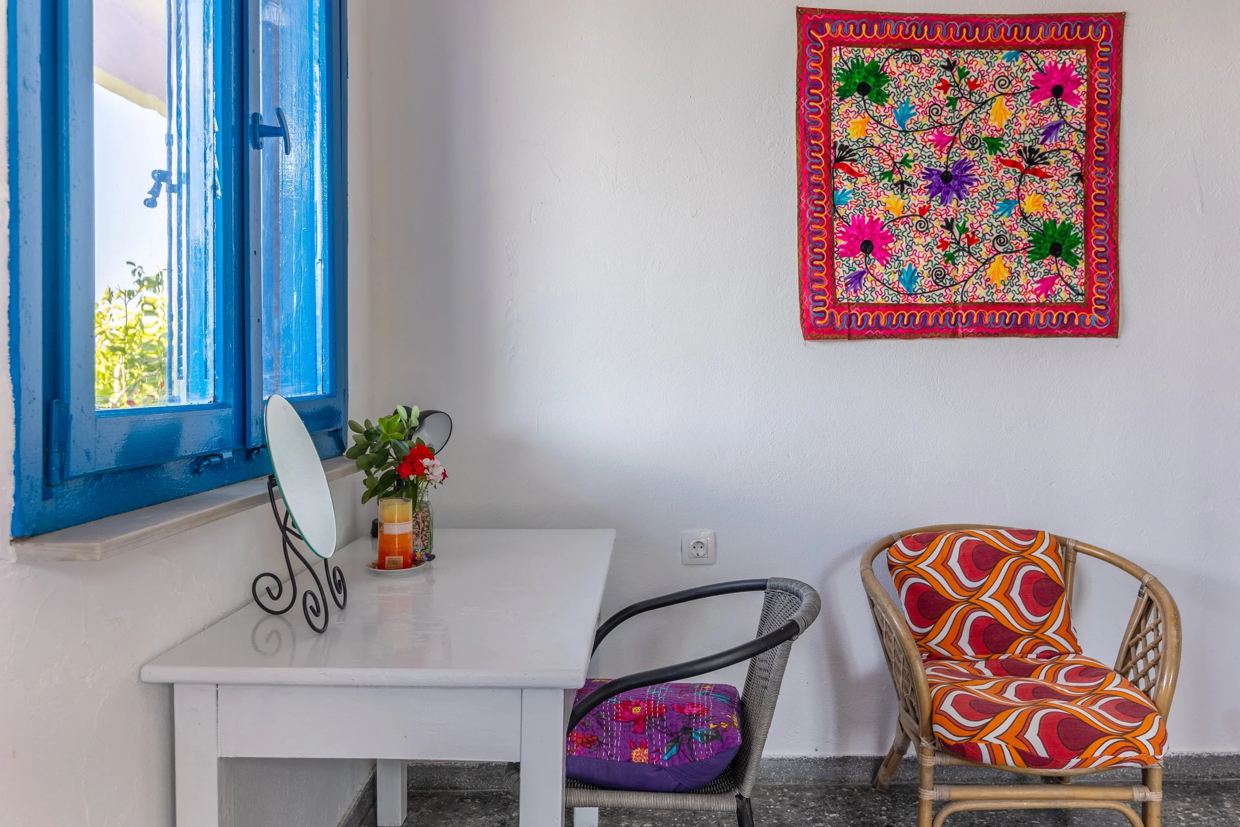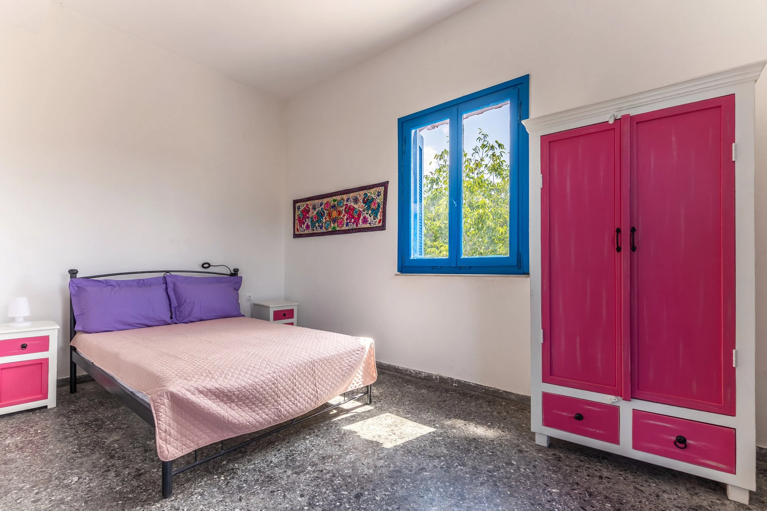 The Pink Blossom Room is a spacious and comfortable 50 m² room located on the first floor, offering beautiful views of the Zaros mountains and garden.
